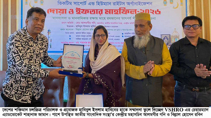 পবিত্র মাহে রমজান উপলক্ষে ভিকটিম সাপোর্ট এন্ড হিউম্যান রাইটস অর্গানাইজেশন (ভিএসএইচআরও) আয়োজিত মানবসেবা ও মানবাধিকার রক্ষায় মাহে রমজানের তাৎপর্য শীর্ষক আলোচনা সভা, দোয়া ওই ইফতার মাহফিল অনুষ্ঠিত হয়েছে।