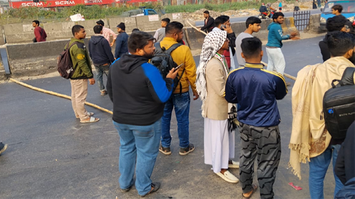 ইনকিলাব মঞ্চের মুখপাত্র ওসমান হাদীর হত্যাকাণ্ডের সুষ্ঠু বিচারের দাবিতে ঢাকা–চট্টগ্রাম মহাসড়ক অবরোধ করেছে ছাত্র-জনতা। রোববার (২৮ ডিসেম্বর) দুপুর ৩টার দিকে নারায়ণগঞ্জের সাইনবোর্ড এলাকায় বাঁশ ফেলে মহাসড়ক ব্লকেড কর্মসূচি পালন করে তারা।