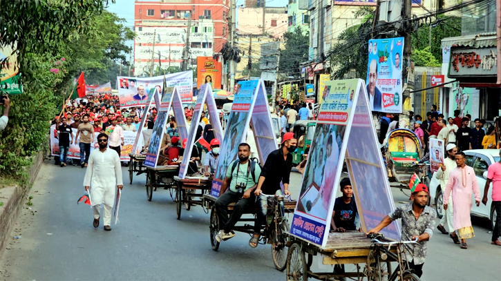 সোমবার (২৭ অক্টোবর) বিকেল চারটায় শহরের খানপুর হাসপাতাল রোডের সামনে থেকে মহানগর যুবদলের উদ্যোগে বর্ণাঢ্য র্যালিটি বের করা হয়। র্যালিটি শহরের প্রধান প্রধান সড়ক প্রদক্ষিণ করেন।